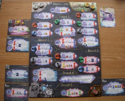 Rozgrywka podzielona jest na 5 rund, a w każdej rundzie gracz może wykorzystać 3 tury umieszczając swoje znaczniki akcji na wybranych polach planszy. Lokacje planszy pozwalają na wykonanie prostych czynności typu pozyskanie żetonów złotych monet, książek lub innych przedmiotów, zwiększenie poziomu determinacji gracza (niektóre pola akcji należy opłacić zmniejszając właśnie poziom ‘woli’, czy też ‘determinacji’ gracza), podejrzenie jednej z dwóch kart innego gracza, kradzież przedmiotów lub podrzucenie niechcianych zbiorów innym.