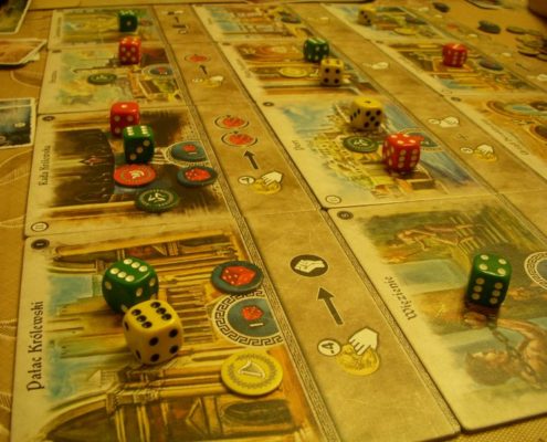 Znam zaledwie garść dobrych gier, w których wykorzystanie kości ma jakiś głębszy sens. Są to Panamax, Cubist i Roll for the Galaxy. Kości nie uwierają mnie też za bardzo w Marco Polo, czy w Bora Bora – dobrze wprzęgnięto je tu w cały mechanizm gry. Dodają graczowi opcji na kombinowanie zamiast je odbierać.