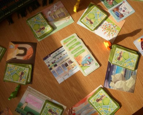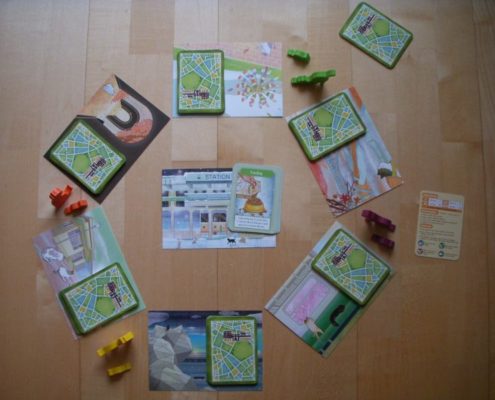 Gra dobrze działa na dwie i trzy osoby – w tym drugim przypadku poruszamy się między sześcioma lokacjami zamiast czterech, co daje więcej sensu w korzystaniu z bonusów przemieszczania i wprowadza więcej ograniczeń w podglądaniu kart. Z drugiej strony trudniej tu coś zaplanować. W dwie osoby gra jest dość szybka, zajmuje 20 do 30 minut, pozwala też na nieco większą kontrolę, gdyż jeden rywal nie psuje tak często naszych zamierzeń, jak czyni to rywali dwóch. Nie grałam dotąd w wariancie czteroosobowym, w którym to dzielimy się na dwie drużyny i łączymy wyniki osób z jednej drużyny.