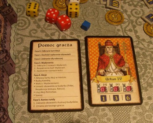 Podobnie jak w Grand Austria Hotel, w tej grze musimy również zadbać o wszystko: pieniądze, punkty wpływu, punkty zwycięstwa, pracowników… Jednak gra wymusza na nas jednoczesne skupienie na jakimś aspekcie. Chcąc nie chcąc, musimy wybrać ścieżkę rozwoju: np. militarną, pieniężną, bezpośredniego dokładania cegiełek budowanej katedry. To, która z tych dróg może stać się kluczem do zwycięstwa okaże sią na końcu rozgrywki – przy odkryciu kart patronów. Każdy gracz losowo dobiera postać patrona na początku gry i nie ujawnia jej innym graczom aż do końca partii. Patron przyznaje dodatkowe punkty zwycięstwa za spełnienie określonych na danej karcie wymagań, ale co najważniejsze, przyznaje je wszystkim graczom. Rozgrywka wzbogaca się o dodatkowy aspekt – podpatrywania współgraczy, próby odgadnięcia jaką postać posiadają, a nawet próby blefowania. Takie zastosowanie sekretnych celów to rzeczywiście wyśmienity pomysł.