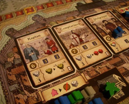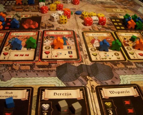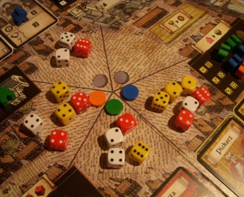 Troyes prezentuje zupełnie inne wykorzystanie kości niż to zastosowane w Grand Austria Hotel. Tutaj każdy gracz ma własną pulę kości, którą najpierw musi jednak stworzyć dzięki… mechanizmowi worker placement. Mamy tu też więcej możliwości zmian wyników wyrzuconych na kościach. Zyskujemy możliwość kupowania kości innych graczy (właściwszym słowem byłoby podkradanie) i związaną z tym intensywną interakcję.