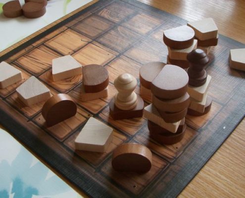 Podsumowując, to bardzo ciekawy tytuł, łączący tradycyjny wygląd i nowoczesne spojrzenie na ruch pionów. Zapożycza ruch z mankali, łączy to z budową i dzieleniem stosów, wprowadza element przestrzenny i spojrzenie z lotu ptaka, pozwala na różne taktyki rozgrywki poprzez wprowadzanie nowych pionów w dwóch pozycjach. Jest i grą na spostrzegawczość, i na planowanie długofalowe: świadome budowanie sytuacji, która ostatecznie da zwycięstwo. Wymaga nauki, poćwiczenia, zaobserwowania różnych możliwości, przetestowania kilku rozwiązań. W zależności od przeciwnika i naszego zaawansowania czas rozgrywki będzie bardzo różny. Różna wielkość planszy także wpłynie na charakter rozgrywki. Mi jak dotąd najbardziej podoba się klasyczny wariant 5×5 pól, zaś najmniejszy możliwy obszar gry (3×3) wydaje się dawać zbyt dużą przewagę pierwszemu graczowi.