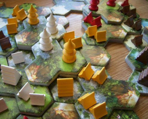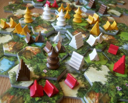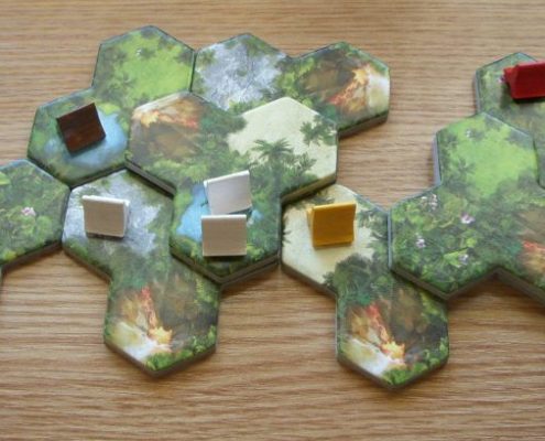 Taluva to gra wyjątkowa z trzech powodów. Jest przepiękna. Jest przeznaczona dla dwóch, trzech a nawet czterech graczy. Jest trójwymiarowa. Tu rzeczywiście musimy myśleć na dosłownie kilku poziomach. Gracze rozpoczynają rozgrywkę z zestawem chatek, wież i świątyń w swoim kolorze. Grę wygrywa osoba, która jako pierwsza pozbędzie się dwóch z trzech typów budynków. W swoim ruchu gracz najpierw wykłada kafel terenu (który rozbudowuje istniejący obszar rozgrywki), a następnie buduje jeden z budynków. Najłatwiej jest wybudować chatki, które w większym skupieniu tworzą osadę; nieco trudniej świątynie, które wymagają posiadania większej osady oraz wieże, które wznosić można dopiero na trzecim poziomie wyspy. Pojedynczy kafel terenu złożony jest z hexów prezentujących zawsze dwa typy terenu oraz wulkan. Kafel taki możemy dowolnie dołożyć do tworzonej mapy na pierwszym poziomie, bądź też zdecydować się na budowę w górę poprzez ułożenie hexa z wulkanem na innym wulkanie. Wybuch wulkanu niszczy chatki na przykrywanym kaflu, pozwalając m.in. na niweczenie planów przeciwników.