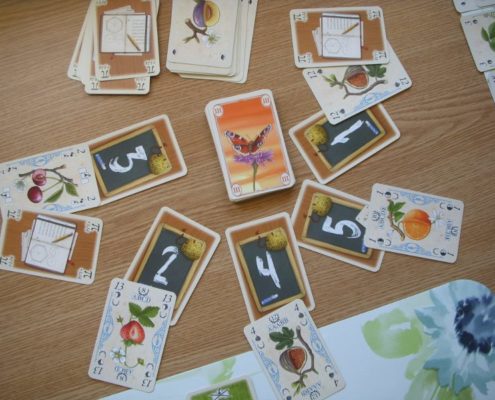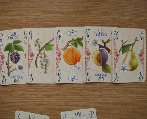 Charakterystyczną cechą rozgrywki jest wspomniana licytacja o pierwszeństwo wyboru: zagrywanie i pozyskiwanie kart. To ciekawy myk, bo większość graczy zazwyczaj chciałaby planować swoje kolekcje w oparciu o karty, które dostaje do ręki. Tymczasem Gra ze śliwką zmusza nas do zagrania tych kart do wspólnej puli, by dopiero z niej móc wybrać coś dla siebie. Kolekcje możemy tworzyć dopiero z kart pozyskanych ze stołu i wyłożonych przed sobą. Tu tkwi całe piękno planowania, przechytrzania rywali, budowania strategii.