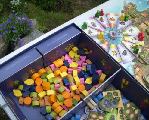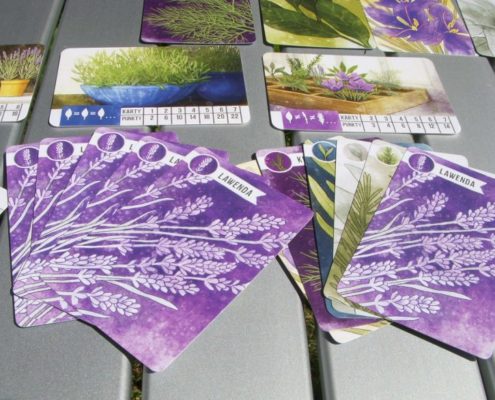 Od razu widać, że jest to rodzaj „gry w tchórza” polegającej na wyczekaniu najlepszego momentu zebrania ciekawego zestawu ziół, sprytnie łącząc karty zasadzone we własnym ogrodzie z tymi rosnącymi we wspólnym. Jest tu lekka gra nerwów z przeciwnikiem, szacowanie, czy bardziej opłaca się zabrać mniej punktowany zestaw ziół wcześniej, czy ryzykować zagarnięcie wspólnych kart przez rywala. Muszę przyznać, że jak na tak nieskomplikowane zasady, gra jest ciekawą łamigłówką i oferuje sporo cudownie wrednej interakcji.