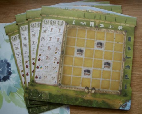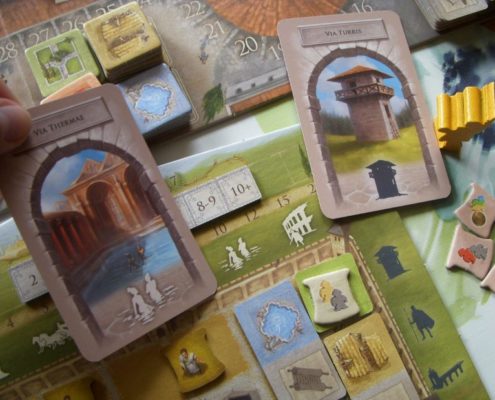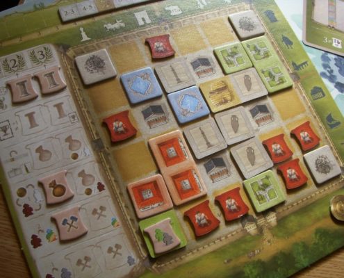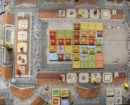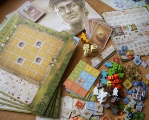 Mimo faktu, ze tura gracza jest w swej konstrukcji bardzo prosta, to z uwagi na szczegółowość drobnych zasad i mnóstwo zależności, gra pod względem charakteru rozgrywki skojarzyła mi się z Bora Bora. Na pewno czuć tu też pewne echa Trajana. Przestrzenność układanki własnej planszy powinna zainteresować osoby, którym podobała się np. Santa Maria, choć był to tytuł ze zdecydowanie lżejszej kategorii wagowej (i oczywiście innego autora). Forum Trajanum jest grą dla graczy. Po pierwszej partii, gdy pojęłam już sporą część zazębiających się mechanizmów i rozwiałam większą część wątpliwości dotyczących reguł, mam dużą ochotę na kolejne – miejmy nadzieję bardziej świadome – rozgrywki.