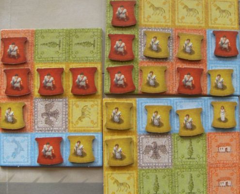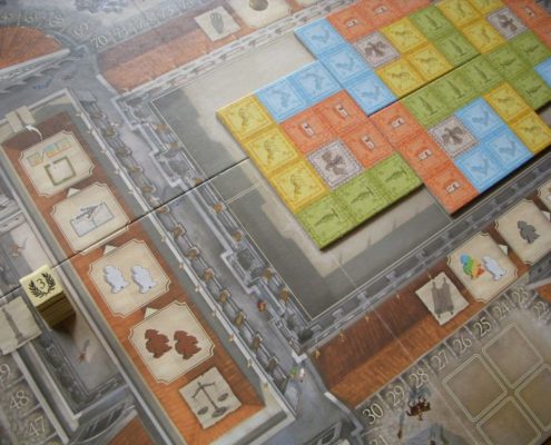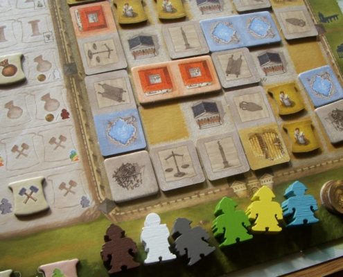 Na plan pierwszy wysuwa się chyba samo tworzenie przestrzennej układanki na własnej planszy, dbanie o zapewnienie sobie jak najlepszego mnożnika punktów oraz sprytna manipulacja kolorami pracowników – meepli. Mamy tu sporo możliwości przekształcania kolorowych meepli w zestawy, które najlepiej przysłużą się do wzniesienia pożądanej budowli. To bardzo przyjemne kombinowanie.