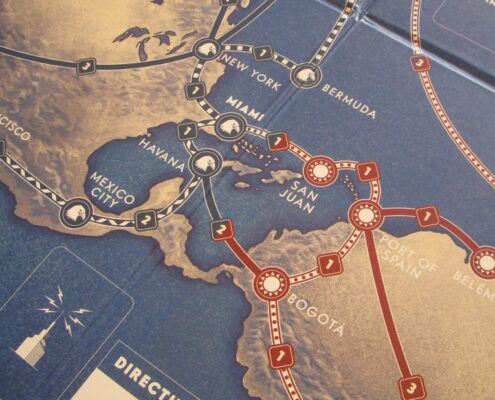 Powyższy opis mógłby wskazywać na jakąś bardziej złożoną grę ekonomiczną, tymczasem rozgrywka w Pan Am jest bardzo intuicyjna. Wyraźne rozdzielenie poszczególnych faz, zanurzenie w temacie, zajmowanie tras na mapie jak w nieśmiertelnym Wsiąść do pociągu, używanie kart destynacji do podróżowania jak w Pandemicu – wszystko to składa się na przystępną i przyjemną rozgrywkę. Pan Am ociera się o grę ekonomiczną, ale pozostaje grą rodzinną, średniozaawansowaną.
