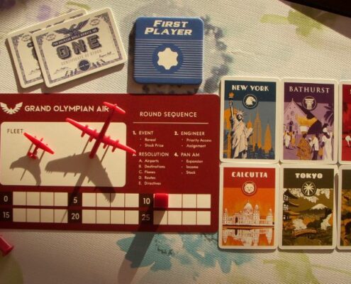 Pan Am polecam Waszej uwadze z całych sił. Moim zdaniem to jedna z ciekawszych, bardziej oryginalnych gier z półki gier średniozaawansowanych. Jest intuicyjna i przyjemna, łatwa do wytłumaczenia. Jest pełna ciekawej interakcji i pewnej przewrotności – nieoczywistych rozwiązań projektowych. Jest też przepięknie zaprojektowana graficznie, w bardzo oldschoolowym stylu. Niesie ze sobą kawał historii i tę nostalgię za pionierskimi czasami czuć podczas każdej rozgrywki.