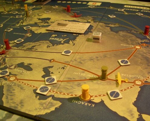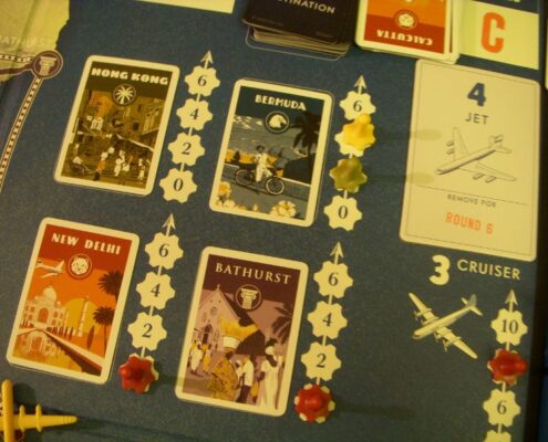 Dwuosobowa rozgrywka w Pan Am to spokojny przelot przy dobrej widzialności i bez większych turbulencji. Dziać się zaczyna w rozgrywce trzyosobowej. Czym więcej osób, tym mniej inżynierów, którymi rozporządza każdy z graczy. Tym mniej akcji możemy więc skutecznie przeprowadzić. Licytacje o co lepsze karty destynacji nabierają solidnych rumieńców. Jest nad czym kminić, bo mało atrakcyjne Nome (gdzie to w ogóle leży?) jest przecież w stanie zastąpić potężne Tokyo. Faza przypisywania inżynierów do pól akcji, w której nader często nasi inżynierowie wracają z podkulonym ogonem przelicytowani przez przeciwników to faza pełna emocji i interesującego słownictwa. To w sumie faza planowania lotów, zatem wymagająca skupienia i dopracowania wszystkich szczegółów. Jeśli przegraliśmy licytację o prawa do lądowania w samym Paryżu możemy ratować się jeszcze wchodząc do licytacji o budowę lotniska. Albo przelicytować rywala w walce o potężnego jeta i zniweczyć jego marzenia na ustanowienie prestiżowego połączenia Paryż – New York.