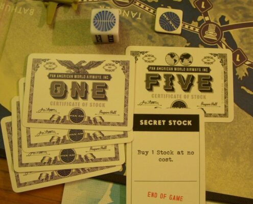 Ciekawostką jest, że podczas rozgrywki trudno wskazać lidera. W ferworze gry raczej nie jesteśmy w stanie zapamiętać ile udziałów przeciwnicy kupują w każdej rundzie. Gracz, którego kolor aktualnie skrzy się na planszy, niekoniecznie będzie miał wystarczające środki na zakup akcji; gracz, który ustanowił lukratywną trasę z operującym na niej jetem, nie zawsze znajdzie sposobność, by sprzedać ją przed końcem gry liniom Pan Am.