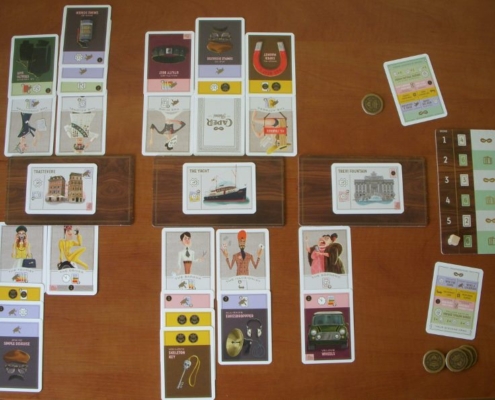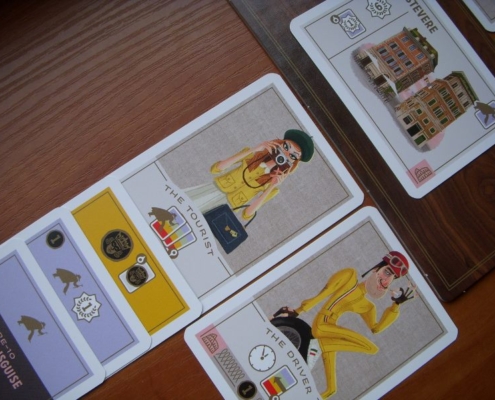 Londyńskie City rządzi się swoimi prawami. Tu liczy się kasa. Karty dedykowane temu miastu skupiają się na przepływie monet: zmuszają przeciwnika do oddania monety lub usuwają je na stałe z gry, by przynieść punkty na końcu partii. Przy okazji warto zauważyć, że w Caperze temat pieniędzy potraktowano bardzo minimalistycznie. To zaledwie 10 kartonowych monet krążących cały czas między dwoma graczami a tzw. pulą. Gra w Londynie każe graczom zwrócić większą uwagę na ten właśnie aspekt rozgrywki. Mnie akurat aspekt finansowy zachwyca w mniejszym stopniu niż inne aspekty fachu złodziejskiego, dlatego londyńską rozgrywkę uszeregowałabym na ostatnim miejscu.