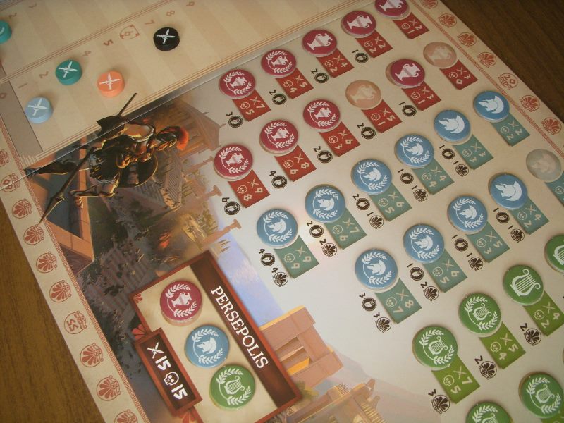 W każdej z 9 rund główną decyzją graczy jest wybór dwóch spośród siedmiu akcji, dzięki którym gracz rozwija wybrany aspekt funkcjonowania swej polis. Może wybierać spośród akcji filozofii, prawodawstwa, kultury, handlu, wojska, polityki i rozwoju, a pieprzu całemu mechanizmowi dodaje fakt, że zobowiązany jest przypisać każdej z akcji wynik rzutu jednej ze swoich kości. Postęp na torze kultury pozwoli mu na odblokowanie trzeciej kostki, tym samym umożliwiając wykonywanie trzech akcji w rundzie zamiast dwóch. Przeróżne tory rozwoju i postęp na nich w wyścigu z przeciwnikami to właściwie sedno tej gry, ale zależności jakimi związane są one ze sobą oraz zestawienie specyficznych zdolności każdej z greckich polis ze zdolnościami pozyskanymi z kart polityki czynią każdą rozgrywkę ciekawą i świeżą.