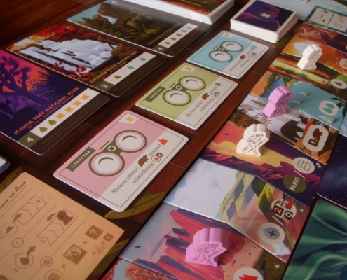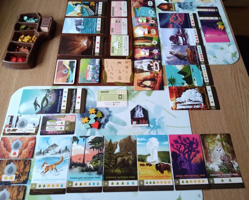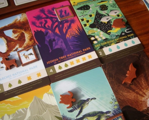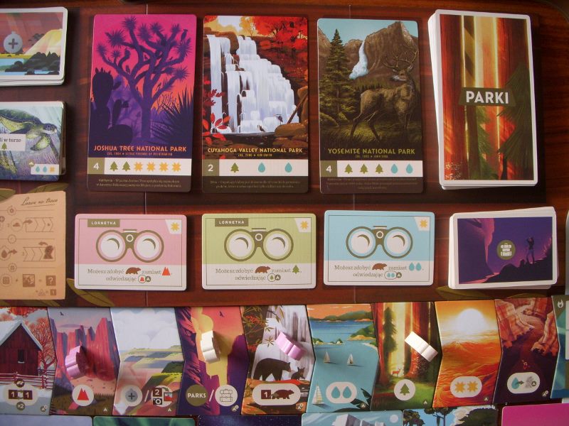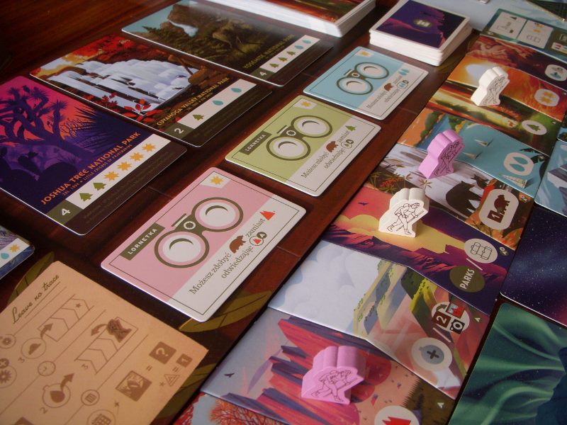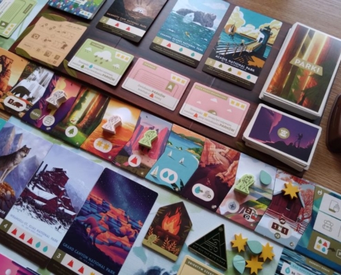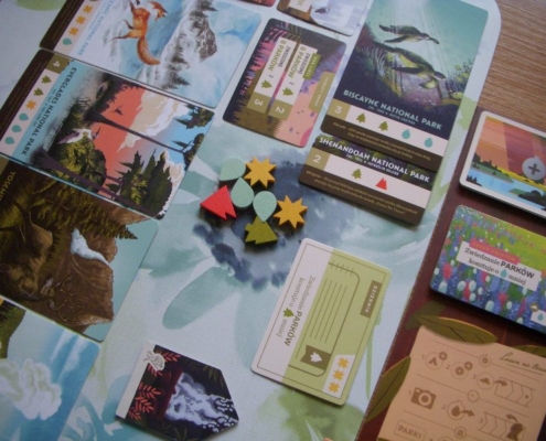 Gra, której ocena rosła z każdą moją rozgrywką, na dużych kartach rozmiaru kart tarota prezentuje grafiki reklamujące amerykańskie parki narodowe, pochodzące z serii wydawniczej Fifty-Nine Parks. Gracze wcielą się tu w rolę turystów wędrujących po szlakach, przepychających się w tłumie podobnych pasjonatów chcących zobaczyć wszystko jako pierwsi, uwiecznić każdy detal na zdjęciach, a nawet rozpalających gdzieniegdzie ogniska.