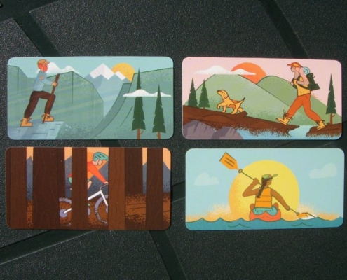 Zadaniem graczy jest zdobycie jak największej liczby punktów z tworzonych przed sobą szlaków: rowerowych, kajakowych i wspinaczkowych. Każdy z graczy otrzymuje 3 karty obozów w trzech kolorach: niebieski dla szlaków kajakowych, czerwony – rowerowych i brązowy – górskich. Gra toczy się przez 4 rundy. Na początku rundy każdy z graczy dociąga z talii 8 kart szlaków. Po zapoznaniu się z nimi wykłada przed sobą jeden z obozów oraz dwie wybrane karty z ręki. Pozostałe karty przekazywane są graczowi obok. Po trzech turach gracze odrzucają pozostałe dwie karty z gry i rozpoczynają kolejną rundę.