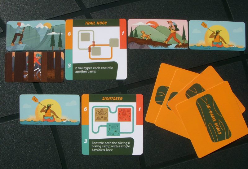 Karty celów potrafią być naprawdę zabawne. Od tych najprostszych każących stworzyć 4 zamknięte szlaki górskie, czy otoczyć szczelnie dwa obozy innymi kartami, po takie nakazujące tworzyć szlaki określonego koloru otaczające obozy innego koloru, czy tworzyć jak najwięcej zestawów szlaków w trzech kolorach. Karty celów dają sporą regrywalność kolejnym partiom.