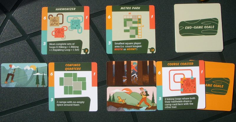 Mając na względzie, że w każdej rozgrywce wyłożymy przed sobą zaledwie 24 karty szlaków, widać już, że pozamykanie szlaków staje się całkiem nieprostym wyzwaniem. Do każdej rozgrywki wchodzą także losowo dobrane karty celów. Dwie karty prezentować będą cele realizowane w trakcie rozgrywki – kto spełni dane wymagania szybciej od rywali otrzyma więcej punktów. Dwie kolejne karty to cele końca gry – kto wypełni dane zadanie lepiej od rywali dostanie więcej punktów. Po zakończeniu rozgrywki gracze podliczają punkty zdobyte z czterech kart celów oraz same punkty za ukończone pętelki szlaków: za ich długość. Długość ta jest określana przez tzw. markery widoczne na szlaku: każdy zakręt i skrzyżowanie szlaków jest takim znaczkiem opatrzone.