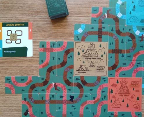 Karty szlaków prezentują różne układy ścieżek w trzech kolorach, które krzyżują się ze sobą, zakręcają, przecinają. Gracze dążą do tego, by zbudować zamknięte pętle szlaków wychodzące i dochodzące do obozu w swoim kolorze. Każda nowo dokładana karta szlaku musi stykać się z wyłożonymi już kartami szlaku czy obozu; może też zakrywać część lub nawet całość innej karty szlaku. Nie jest wymagane też, by takie same typy szlaków łączyły się ze sobą, ale oczywiście na końcu punktowane będą tylko nieprzerwane ścieżki w tym samym kolorze wychodzące i kończące się w tym samym obozie.