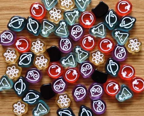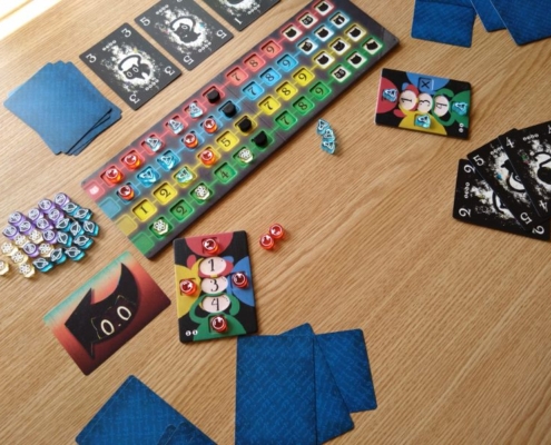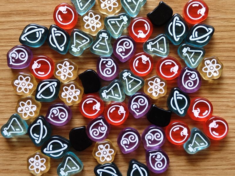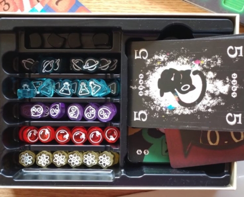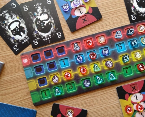 Gra nieprzypadkowo została obsypana nominacjami i nagrodami, w tym nagrodą Golden Geek za grę najbardziej innowacyjną. Jej nietuzinkowość dodatkowo wspiera ładne wykonanie: dwuwarstwowe plansze, fajne grafiki czarnych kotów, półprzezroczyste kolorowe znaczniki graczy, małe pudełko z przemyślanym insertem. Dwustronne karty badań wsuwane w środek planszy badań pozwolą na urozmaicenie rozgrywek i przestrzenne zróżnicowanie wartości na planszy.