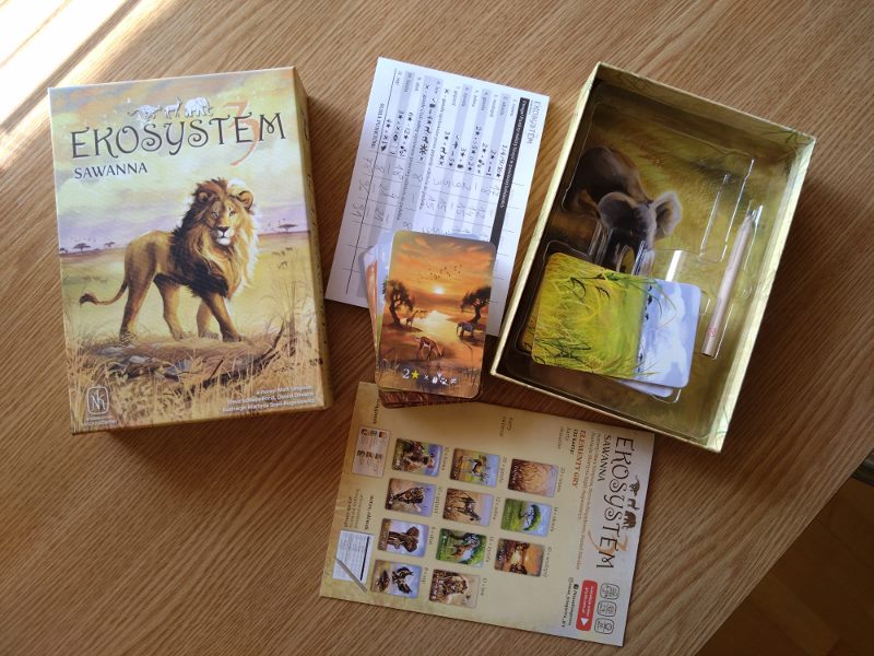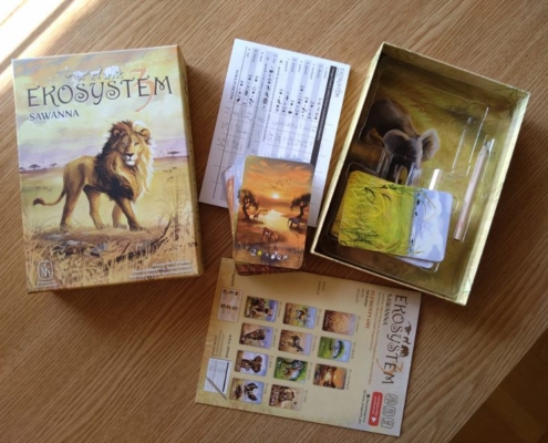 Kolejna, trzecia już, odsłona Ekosystemu wysyła nas na afrykańską sawannę. Gra, dopiero co wydana przez Naszą Księgarnię, znów każe nam szukać i wykorzystywać zależności pomiędzy zamieszkującymi ten teren organizmami. Polska edycja różni się od zagranicznych wydań szatą graficzną i trzeba przyznać, że grafiki autorstwa Martyny Szpil są przepiękne.