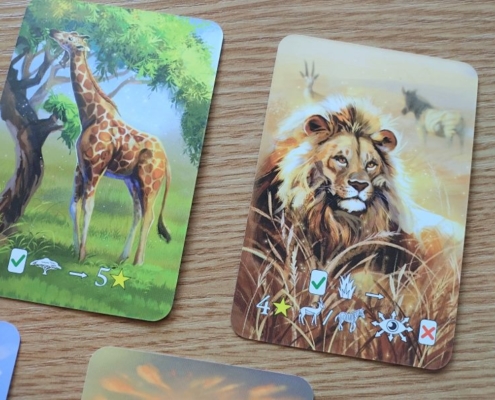 Ekosystem: Sawanna podobnie jak poprzedniczka zawiera też reguły gry dwuosobowej oraz solo. Sama wolę jednak grać w Ekosystemy w większym gronie, ale oba te warianty są co najmniej przyzwoite. Zupełnie ponadprzeciętne i wręcz powalające na kolana są za to ilustracje kart afrykańskich zwierząt i tu naprawdę cieszę się, że możemy w Polsce bawić się tą serią w takiej właśnie graficznej odsłonie.